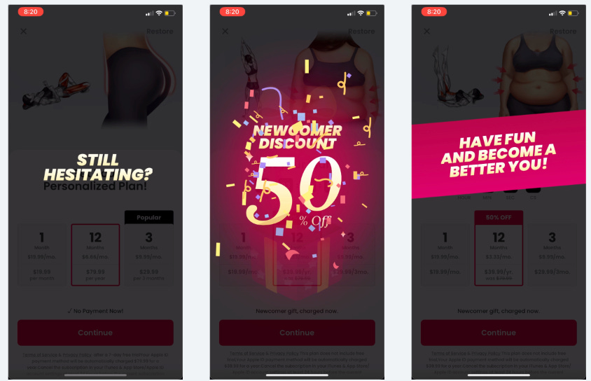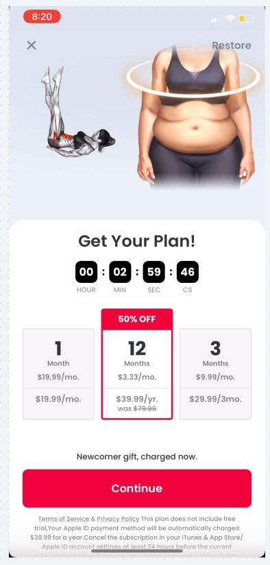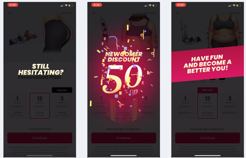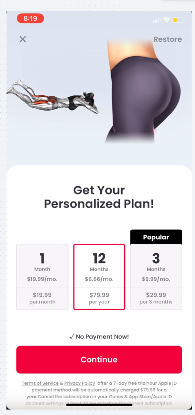 The initial paywall shows a nice animation of how much better my butt will look