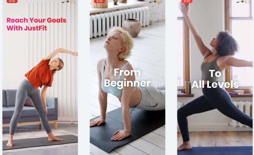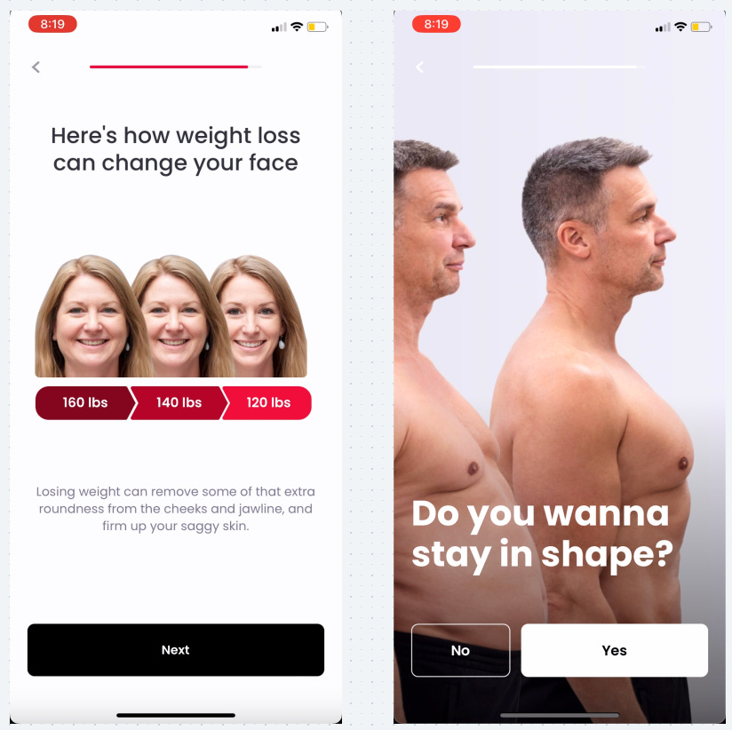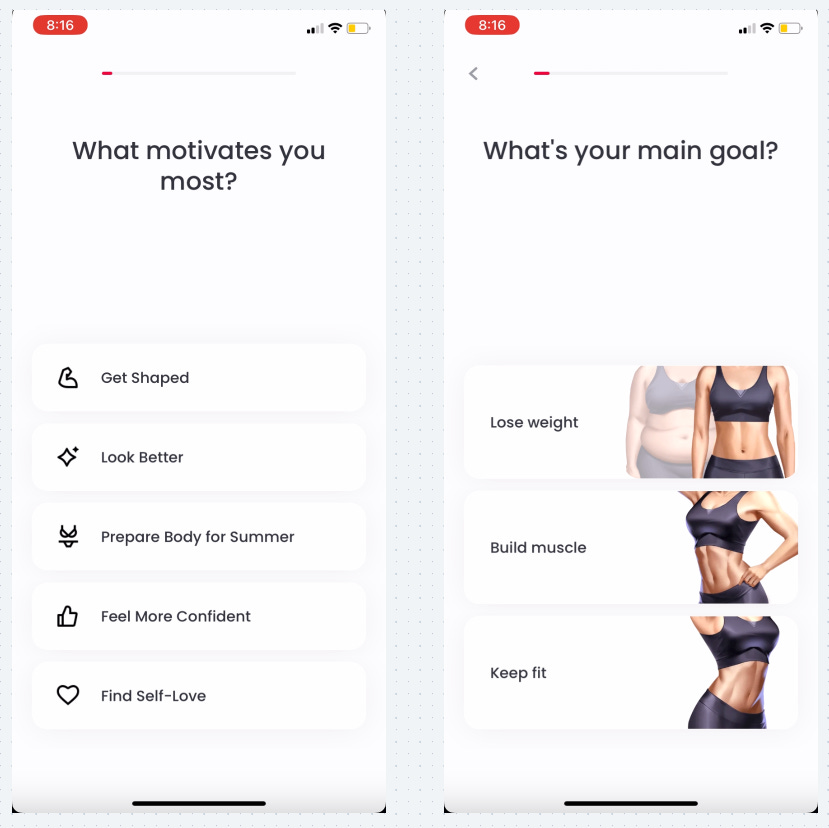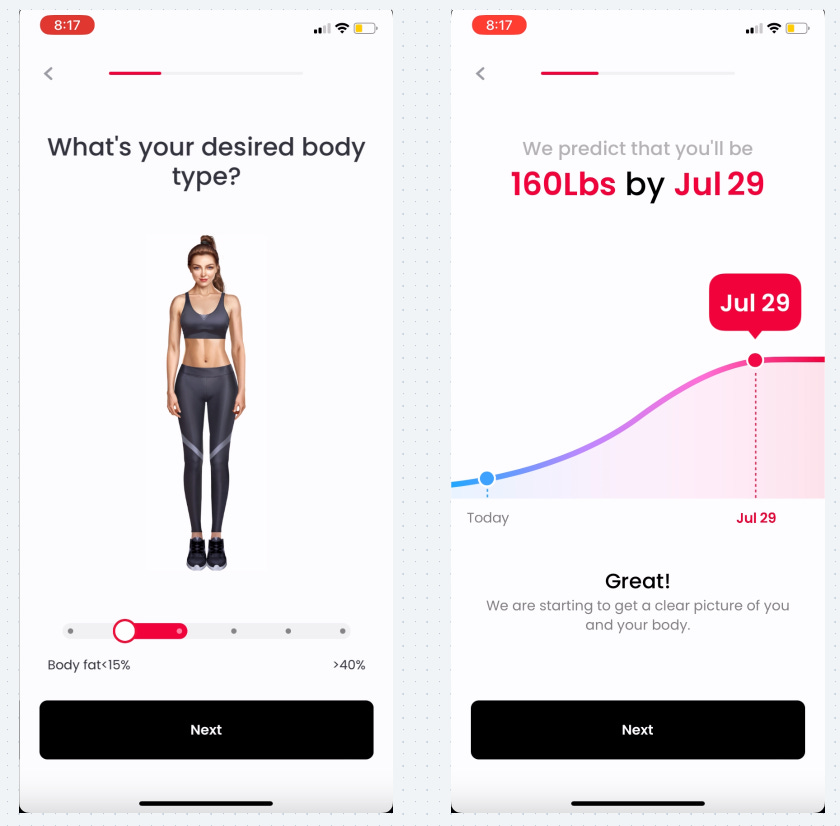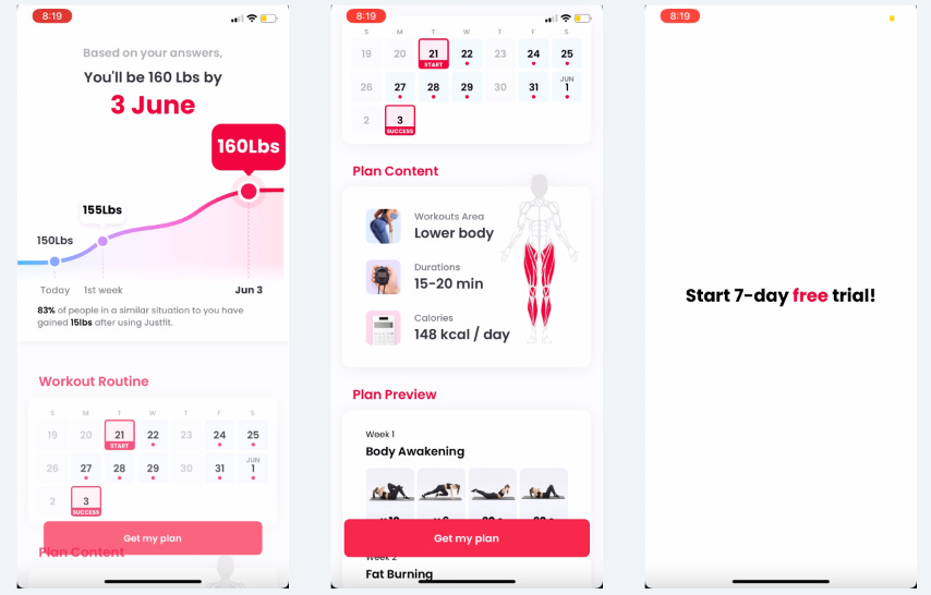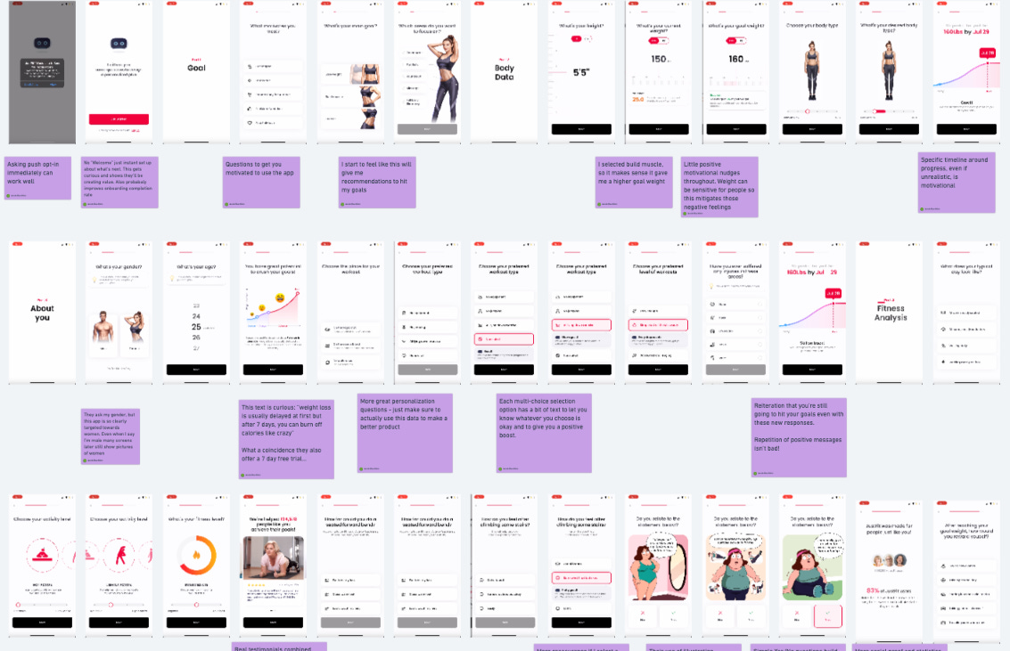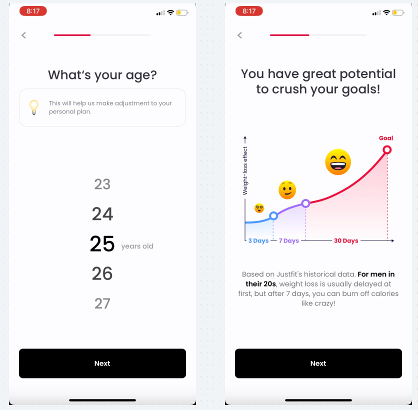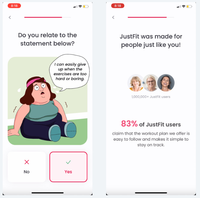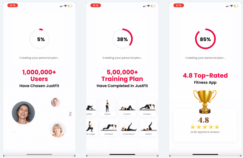 JustFit has a very long onboarding flow with ~60 screens (!)