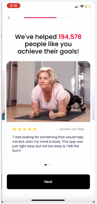 At about the 30th screen, they show a combo social proof + testimonial screen.