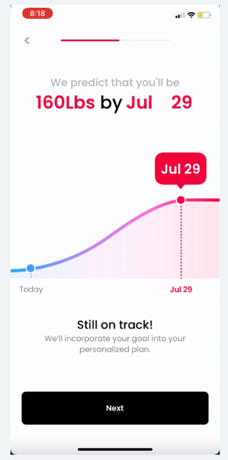 About 10 screens in they show you a graph that predicts your progress by a specific date