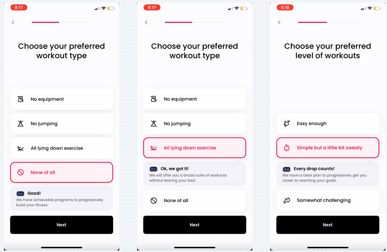 They give you context that all these questions are designed to personalize your plan. This will likely boost the onboarding completion rate