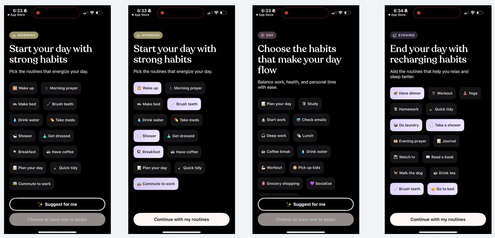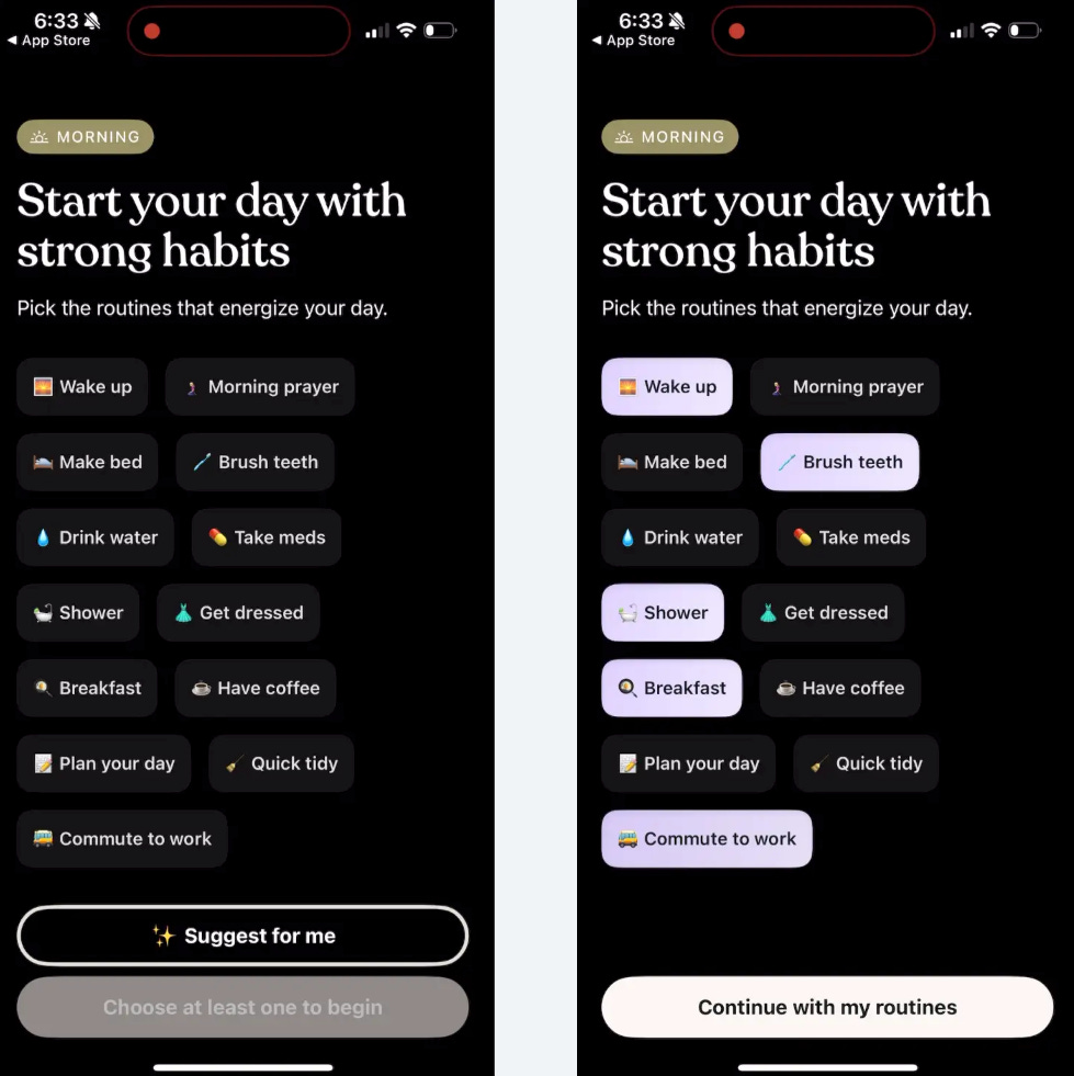 I don’t know what routines I should pick. What do I do? Stare at the screen until I get frustrated and close the app? Randomly tap some to move on?