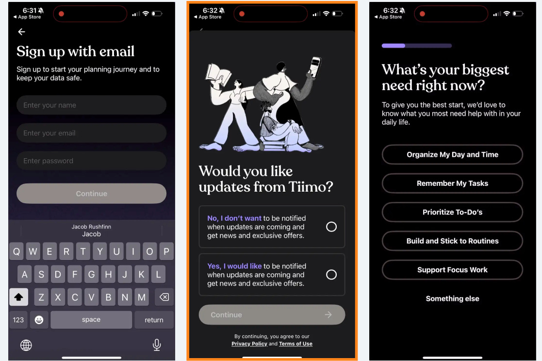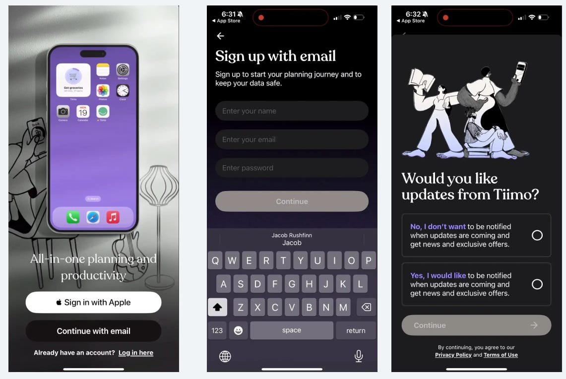 If you noticed above, immediately after Tiimo asks you for account creation, they ask if you’d like to receive updates.