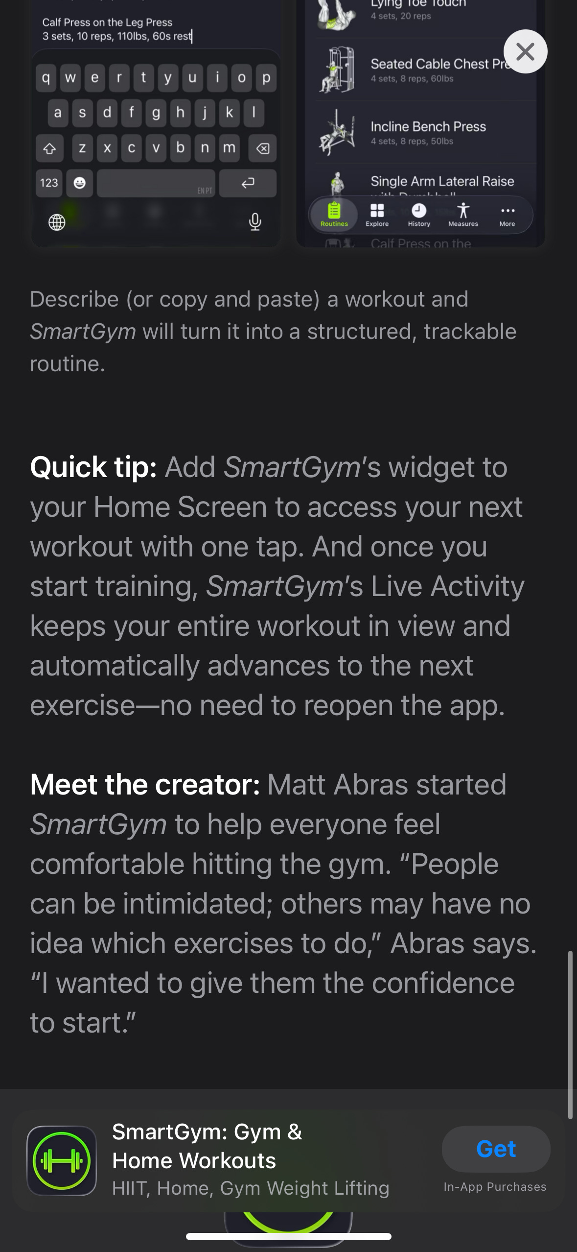“SmartGym’s AI-powered Smart Trainer (found on the app’s More tab)” ← give the editors direction on where thing are in your app