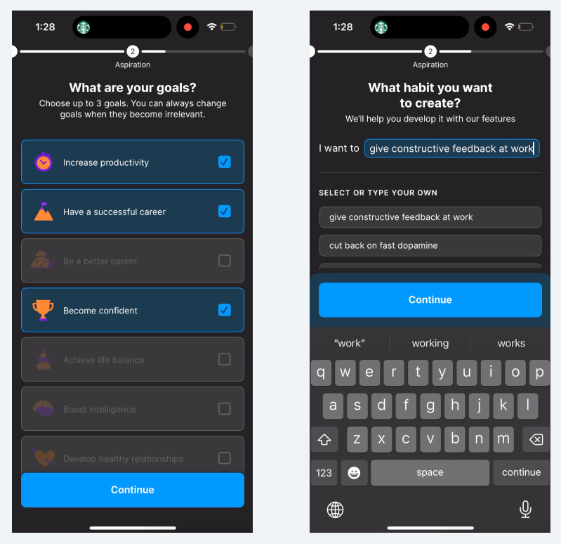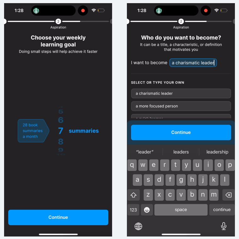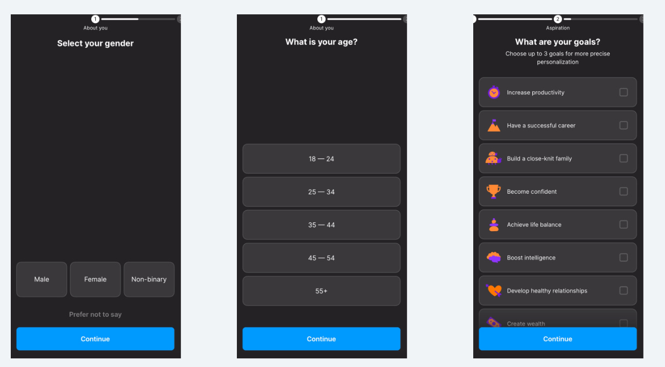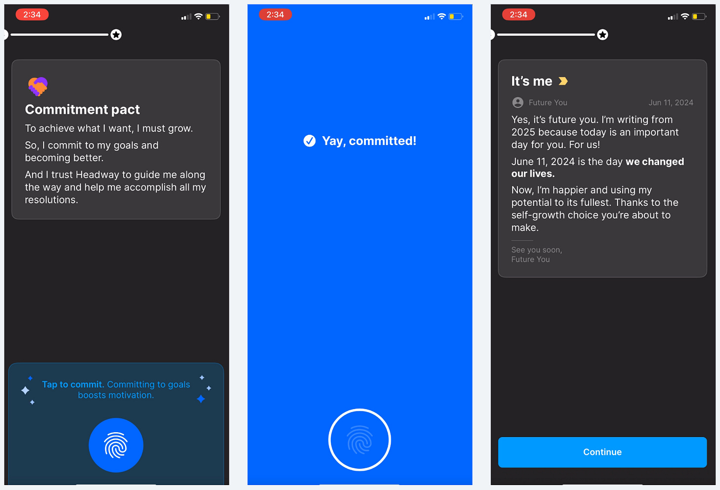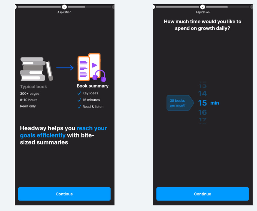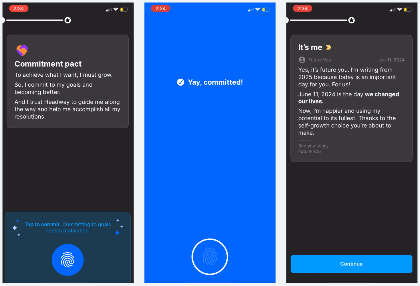 Here’s the beginning of Headway’s onboarding flow in Jan 2024