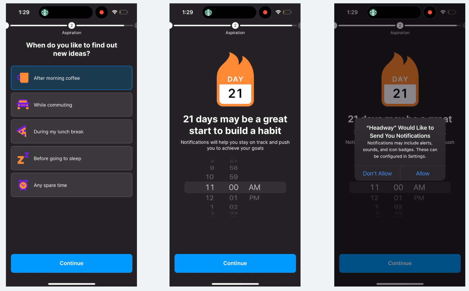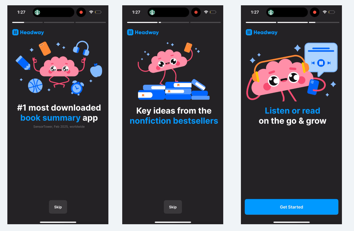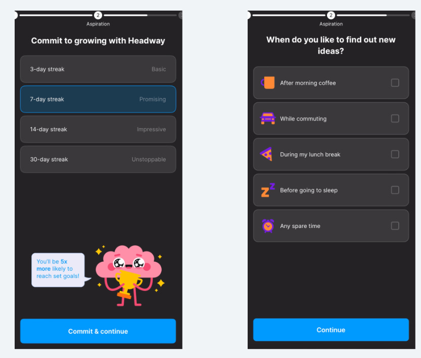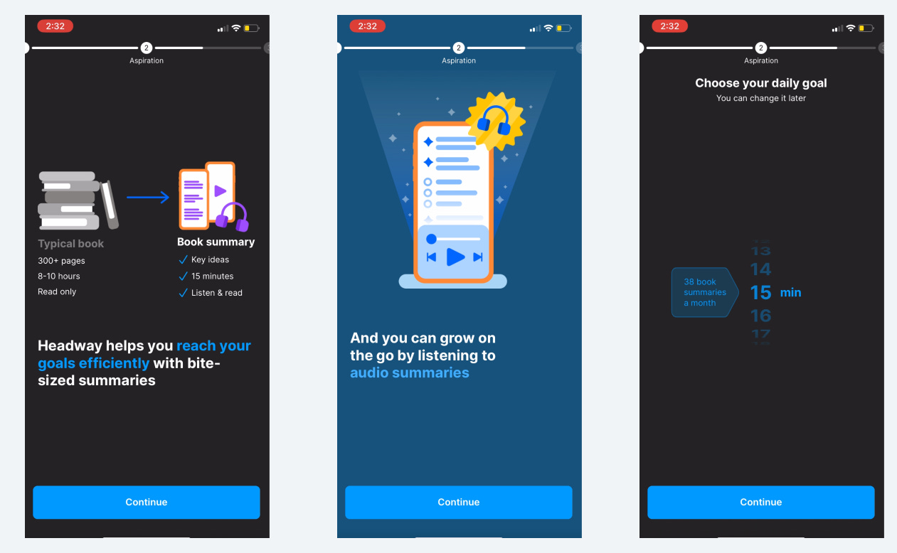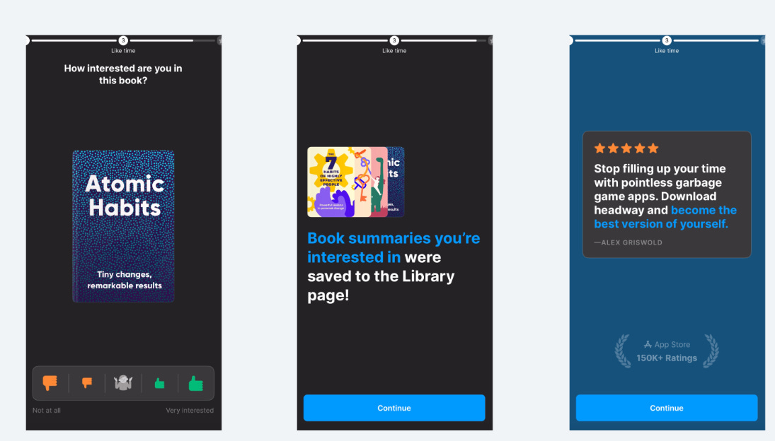 Want to review everything yourself? See all three iterations of Headway’s onboarding here.