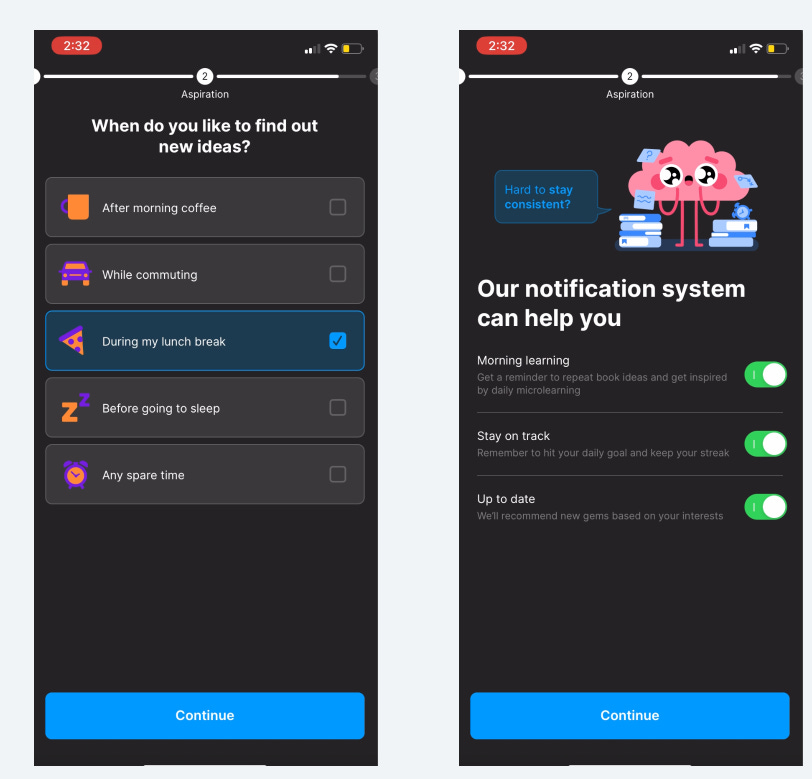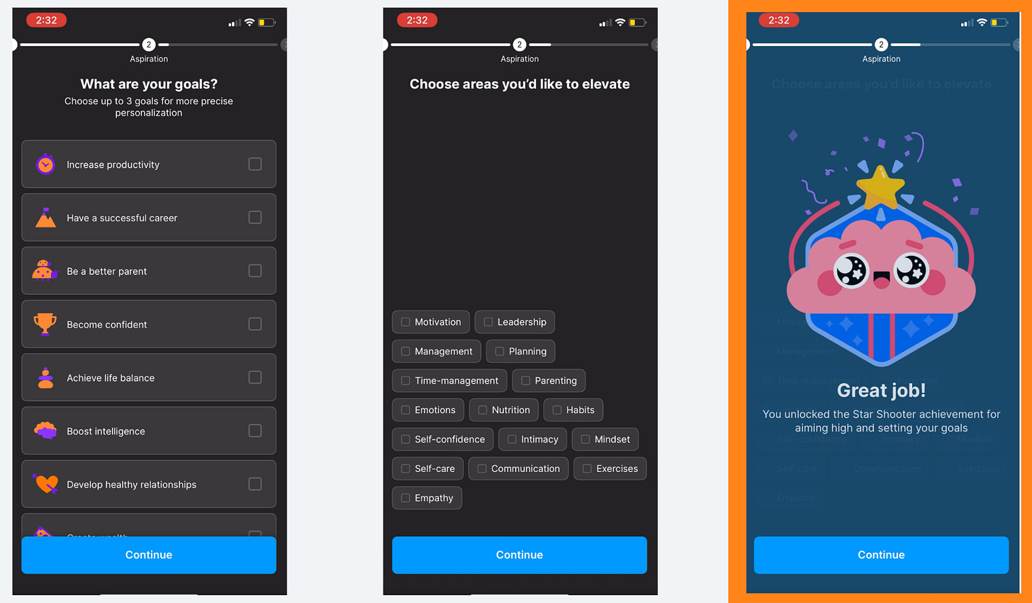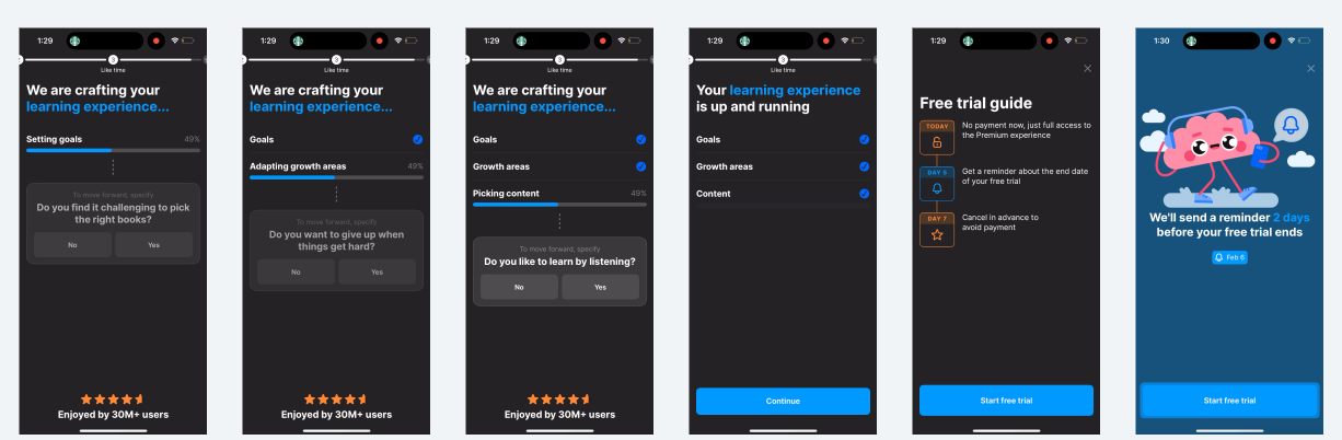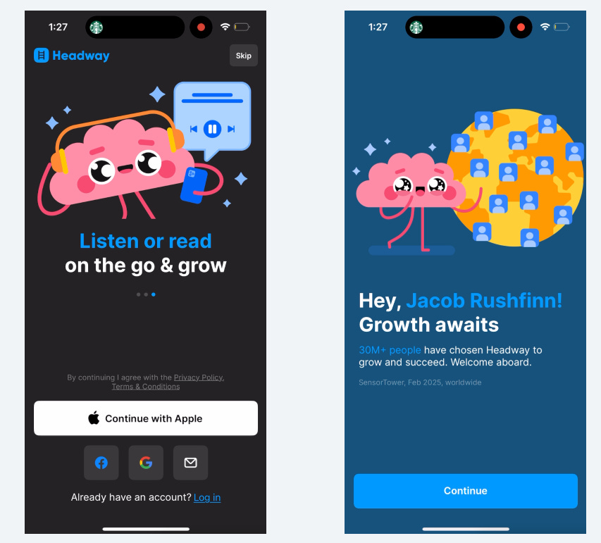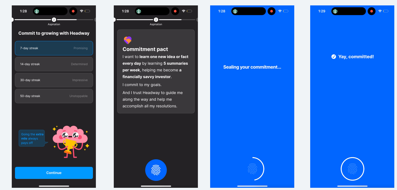 Want to review everything yourself? See all three iterations of Headway’s onboarding here.
