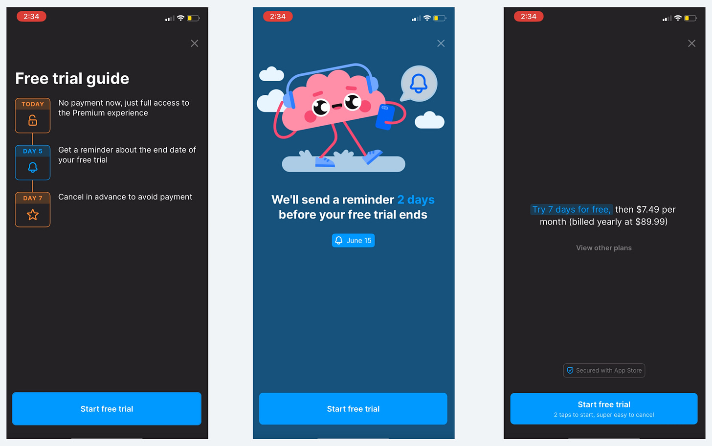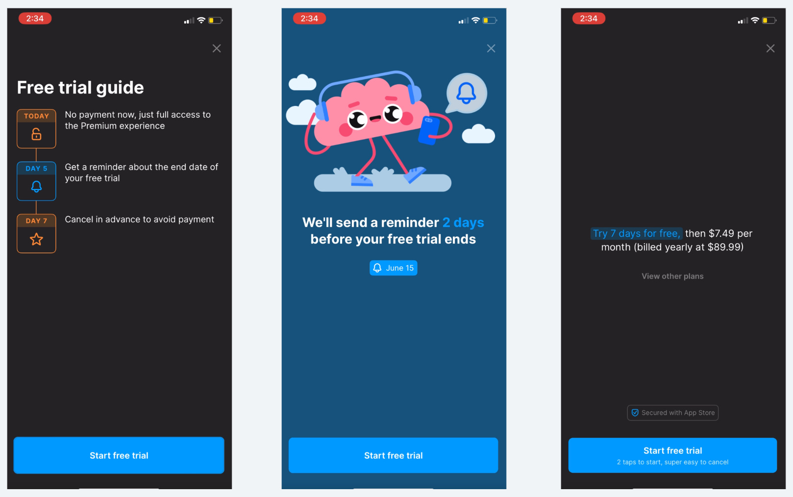 And then we move into the paywall - they use the Blinkest trial timeline view
