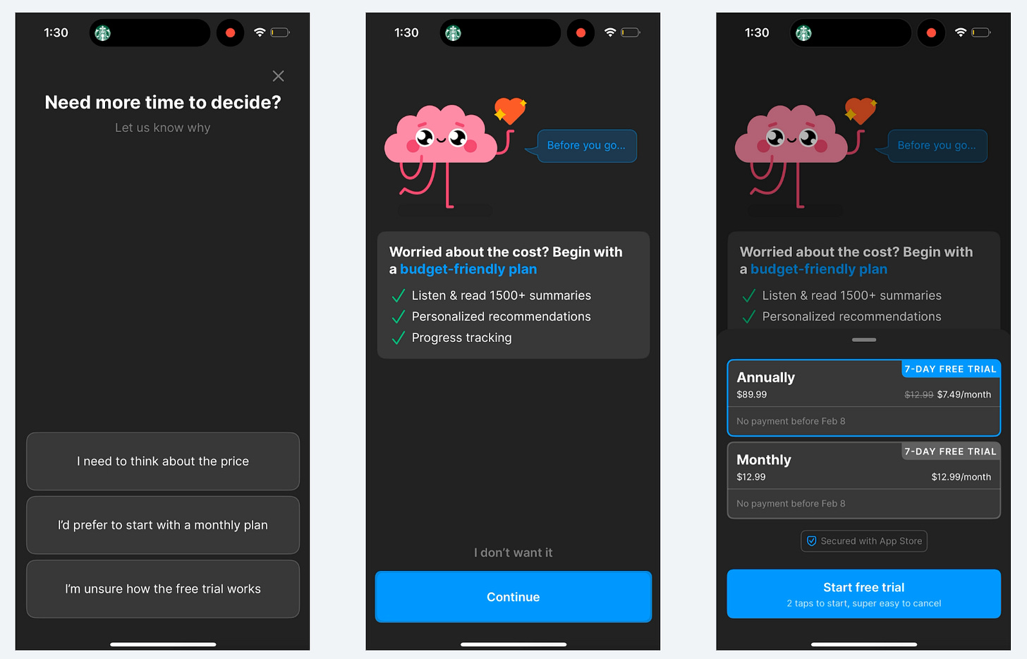 We’re seeing this multi-page paywall become pretty popular and successful among other apps (need a new paywall test? try this out).