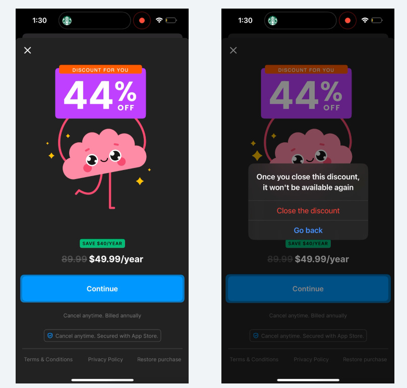Interestingly, there isn’t a discount shown compared to the first paywall.