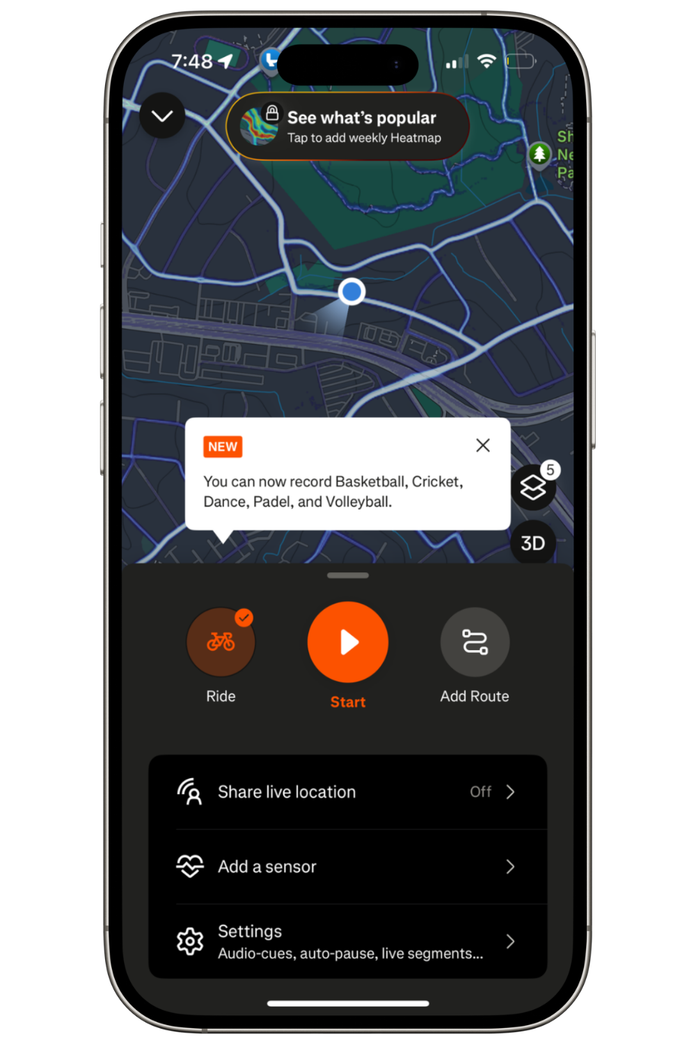 Here’s another part of Strava where they have tooltips showing new features.