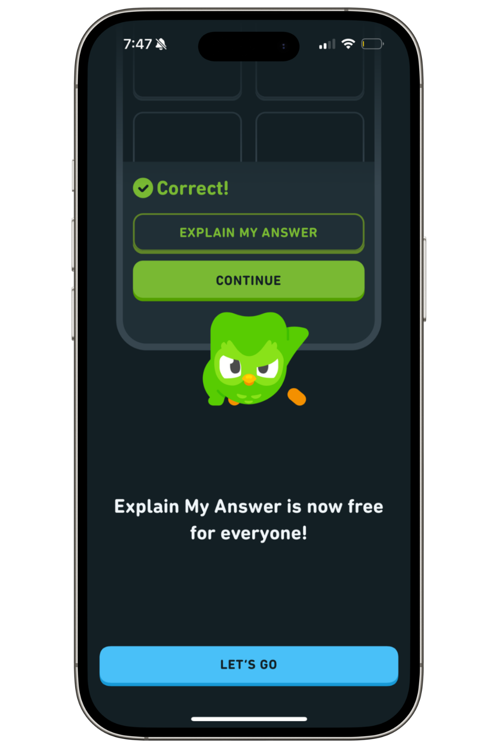 Duolingo will show new in-app messages to promote “Whats new” to you.
