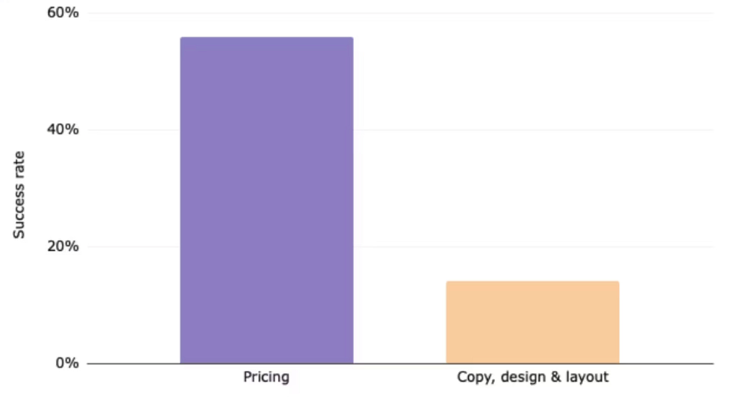 His experience showed only a 14% success rate on those compared to 56% for pricing tests.