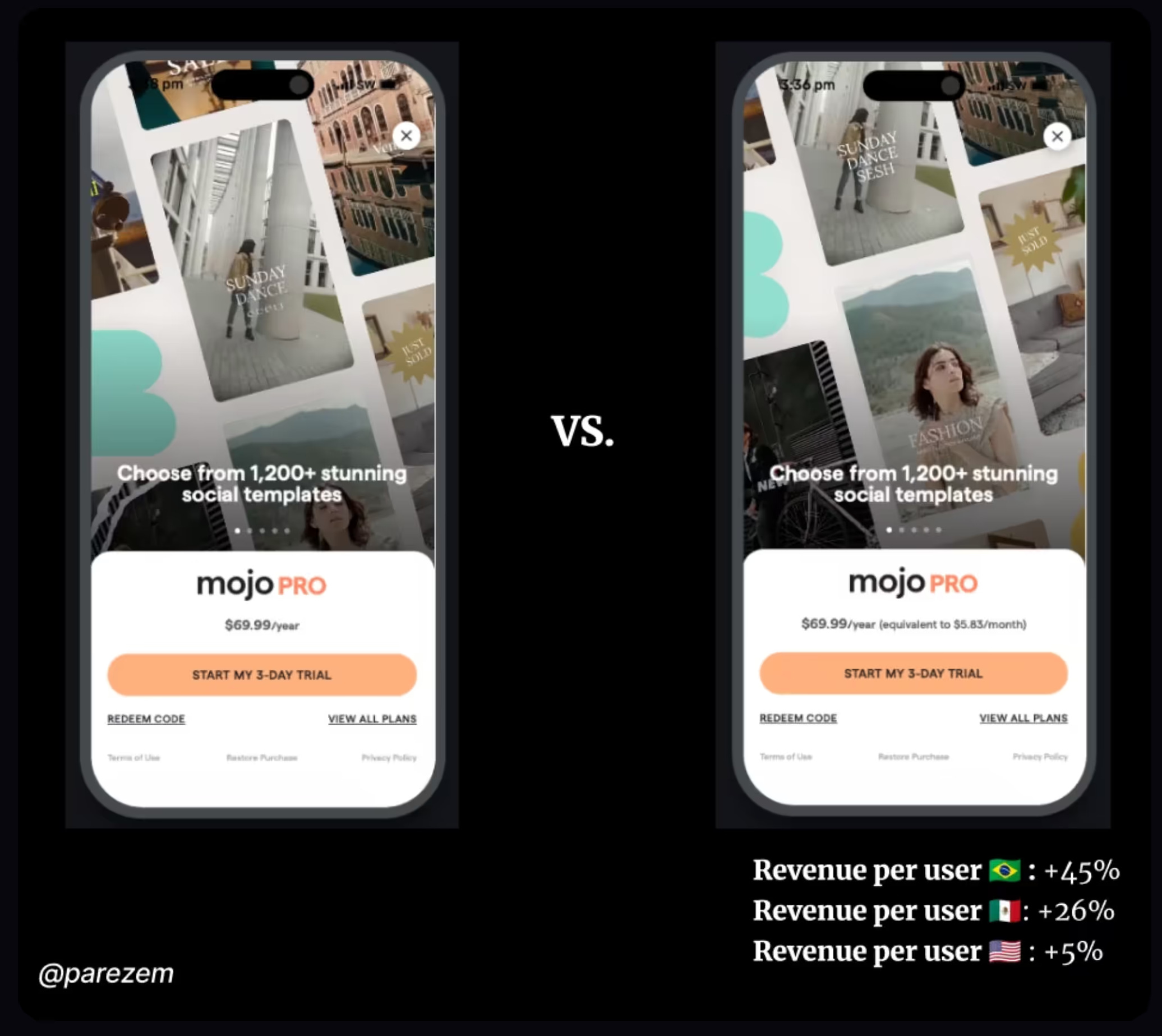 When Mojo dropped prices 25% in Mexico, they saw a 25% lift in new revenue.