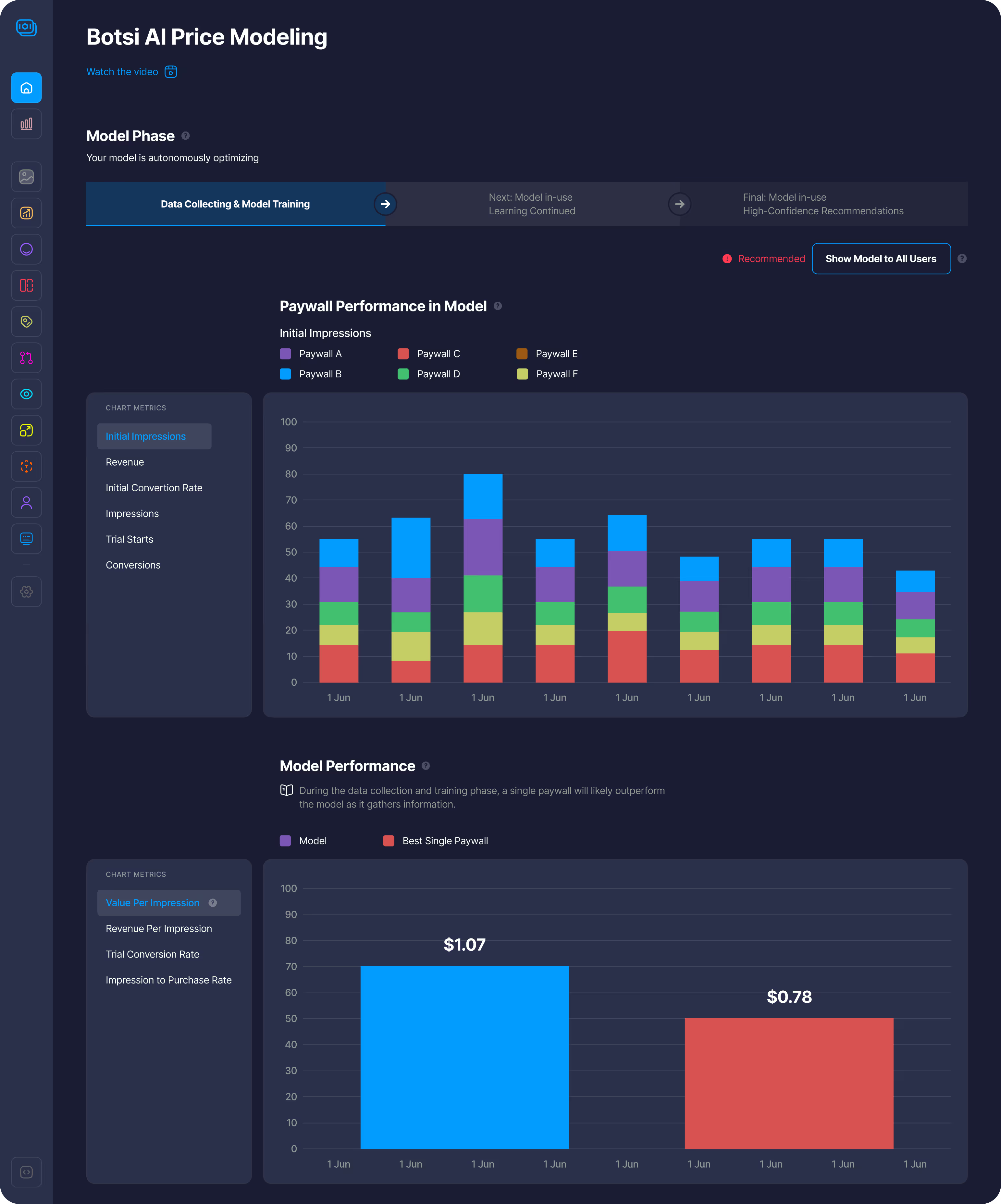 Every app we work with, we generate and train a custom model for that app. We take into account custom inputs and behavioral data to figure out how to optimize your revenue.