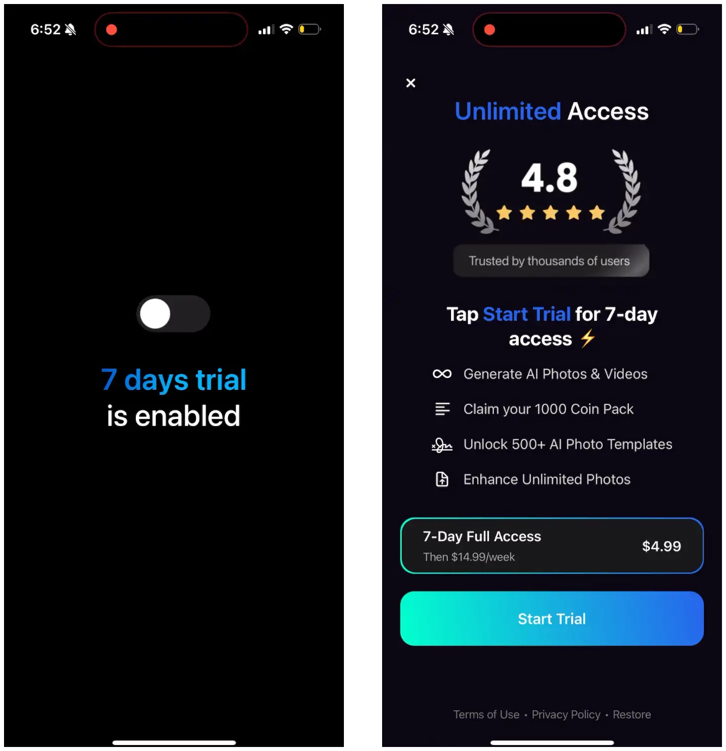 I think the one of the best take away is to not offer an extended free trial. I'm not sure of these ai apps's daily retention but if it's low, an extended free trial isn't going to make it for them. A shorter trial should be enough to show the value. Or maybe some credits that refill every week or month and then a direct purchase (though this may not formulate a habit)