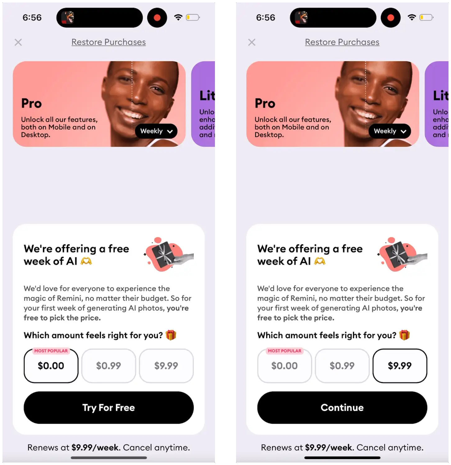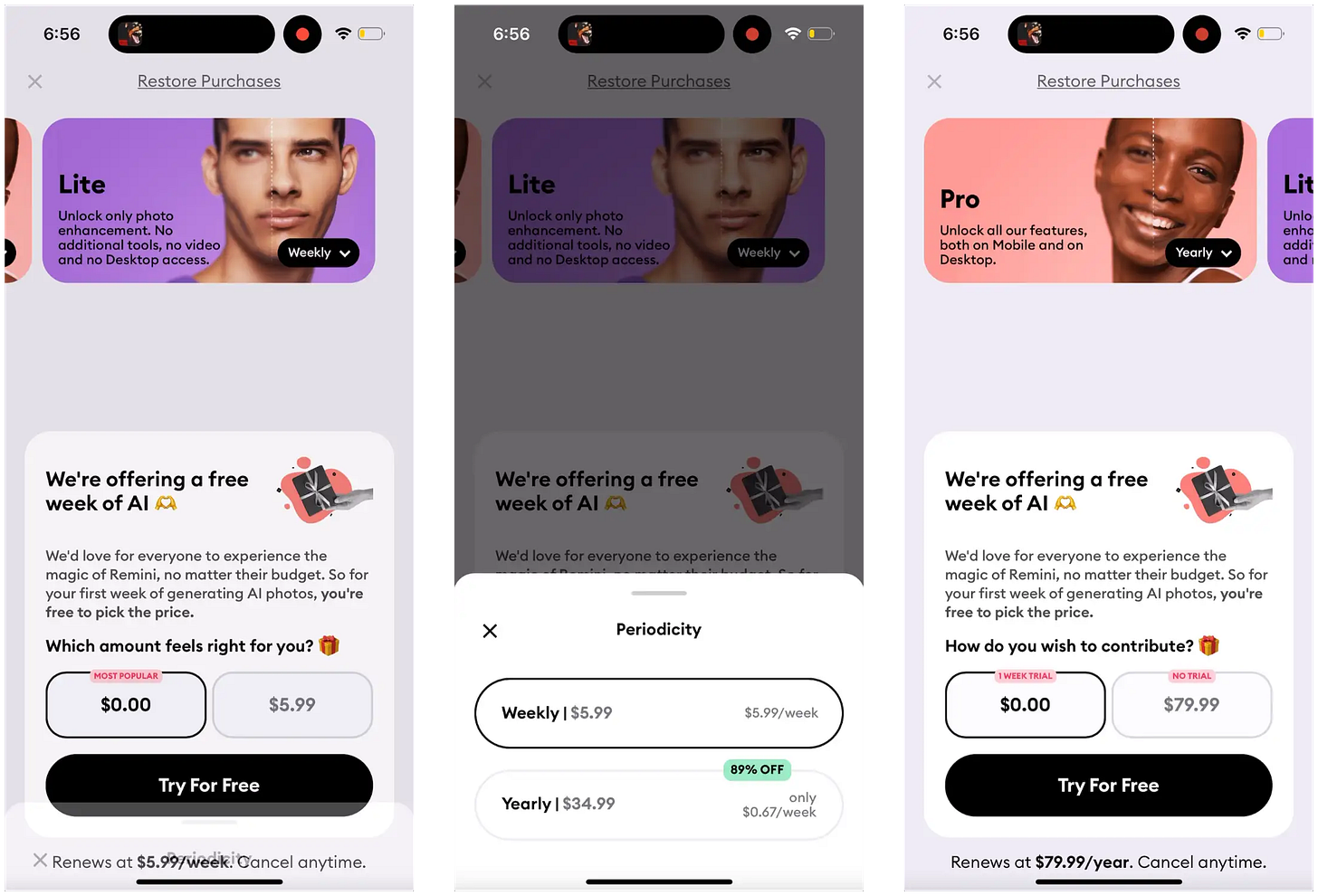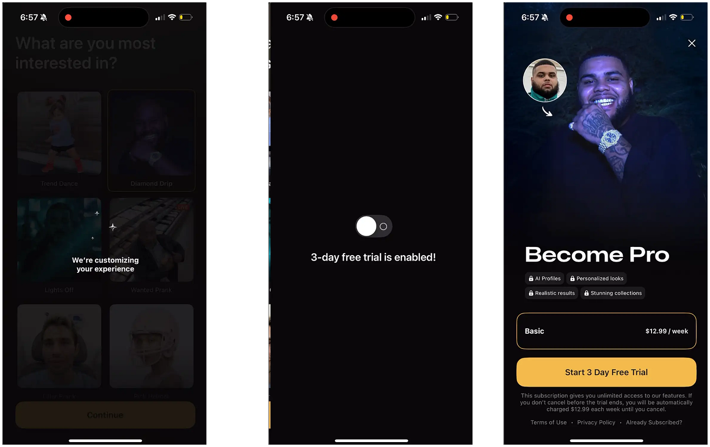 The personalization framework here is really underrated. Asking one question during onboarding and then reflecting that choice back in the paywall is such a simple pattern but the data clearly shows it works. I've seen similar approachs in fintech apps where asking about goals upfront increased conversion by ~40%. The weekly plan defaultstrategy also makes sense for consumption uncertainty - people don't know how much they'll use AI tools yet. That $0.99 first month offer from Remini is clever for reducing billing friction while still capturing intent.