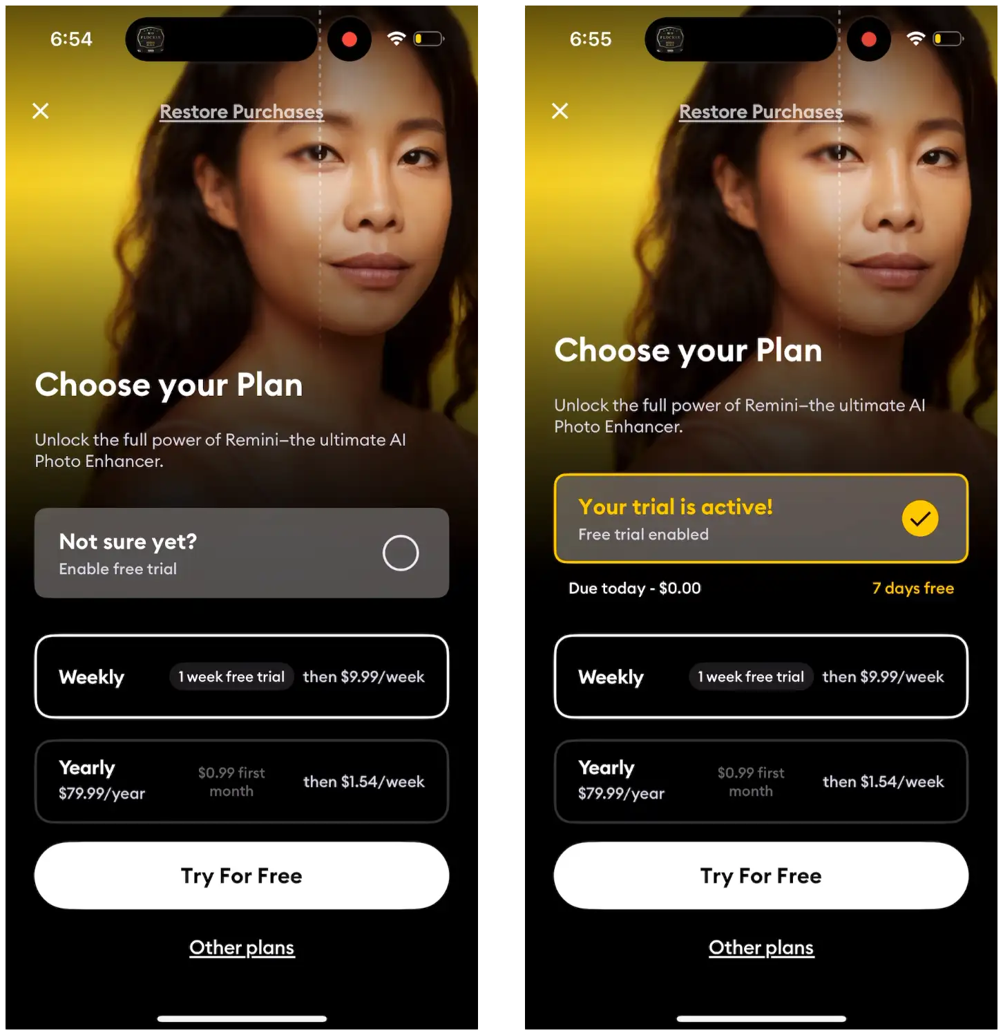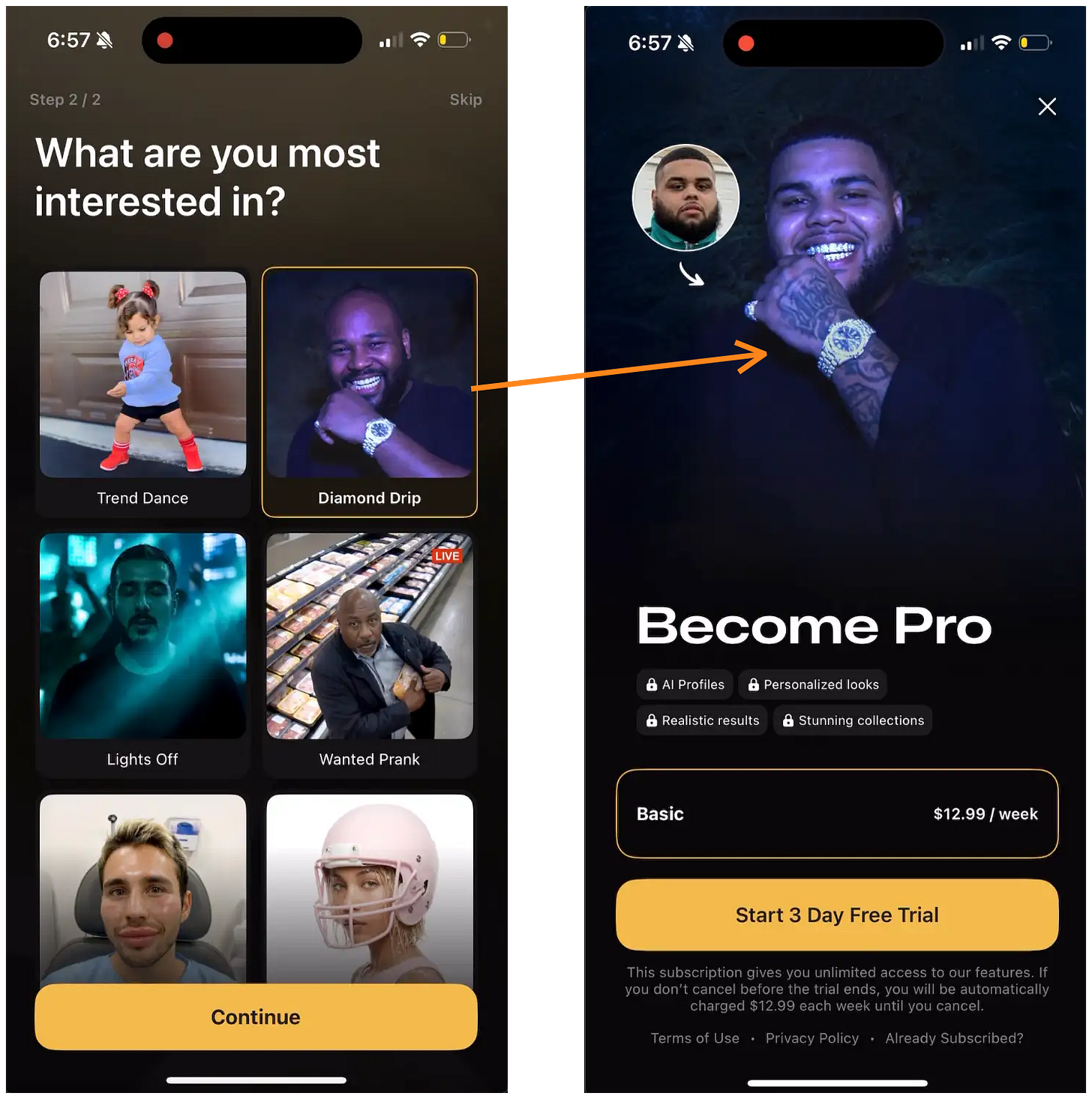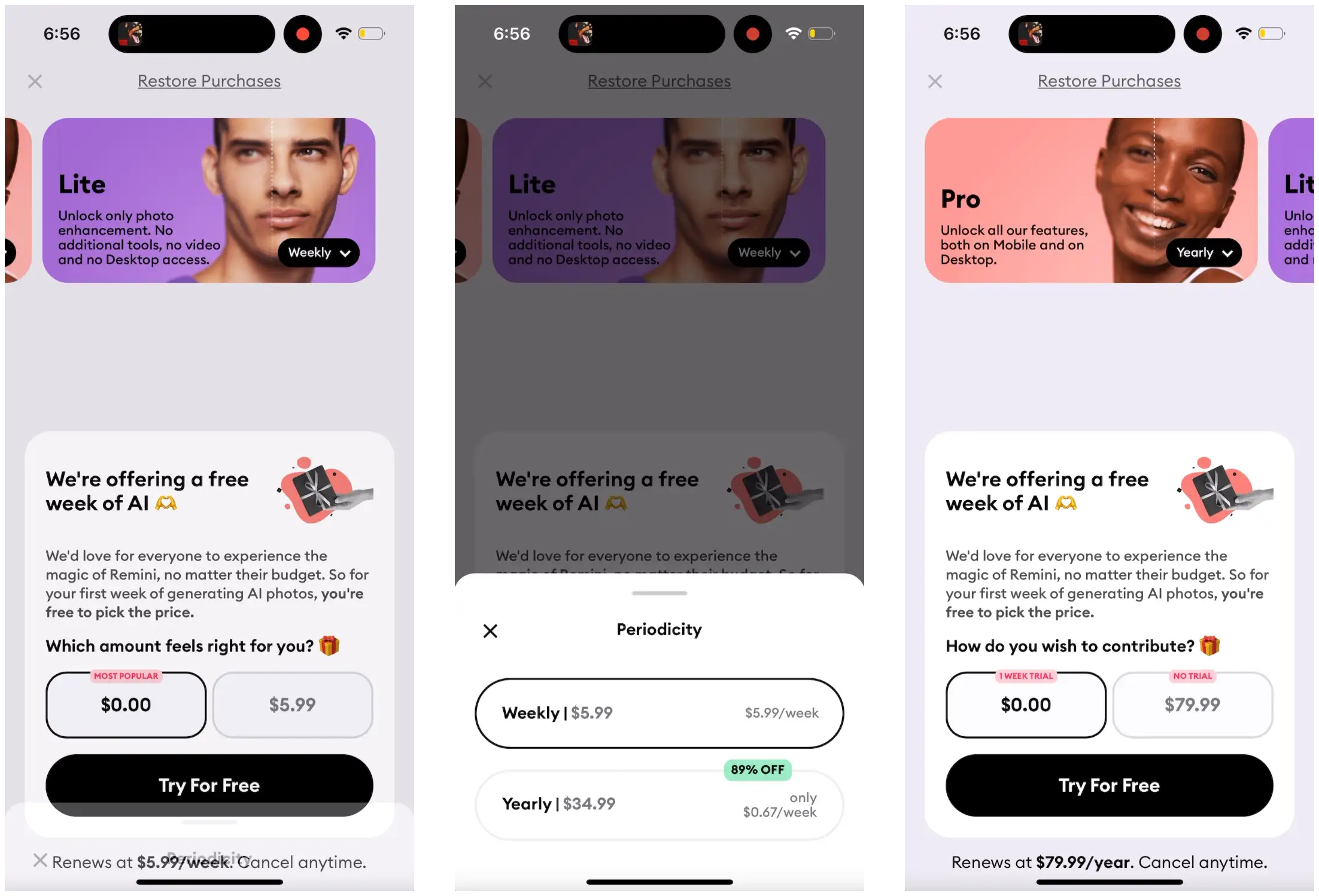The personalization framework here is really underrated. Asking one question during onboarding and then reflecting that choice back in the paywall is such a simple pattern but the data clearly shows it works. I've seen similar approachs in fintech apps where asking about goals upfront increased conversion by ~40%. The weekly plan defaultstrategy also makes sense for consumption uncertainty - people don't know how much they'll use AI tools yet. That $0.99 first month offer from Remini is clever for reducing billing friction while still capturing intent.