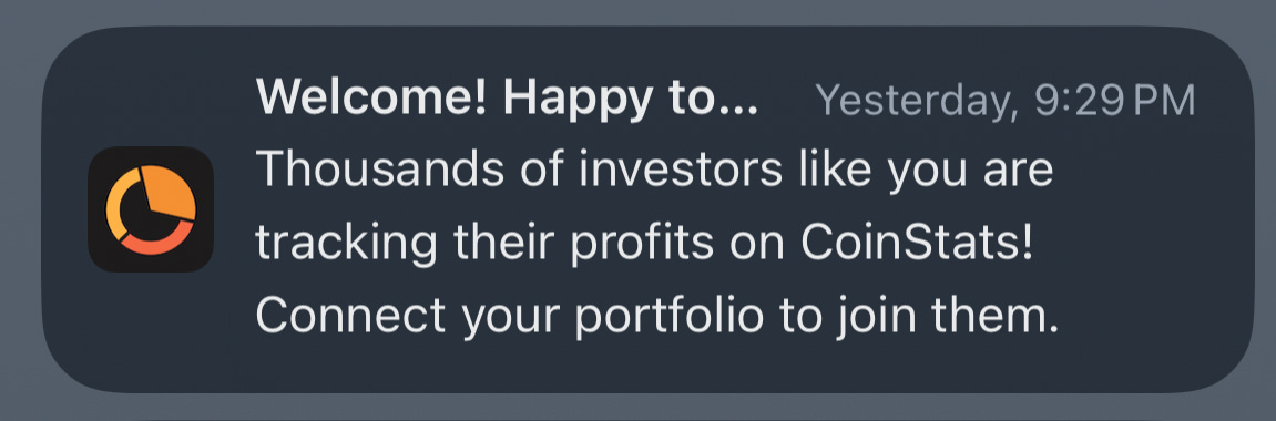 Coinstats knows that they need you to connect your portfolio before they can provide real value.