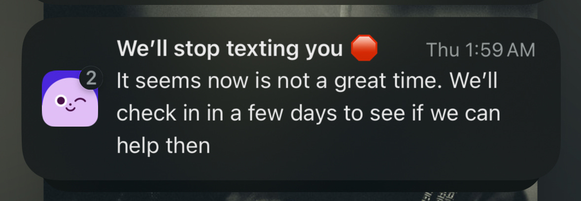 If someone isn’t engaging, you can then stop sending these messages if you worry about uninstalls.