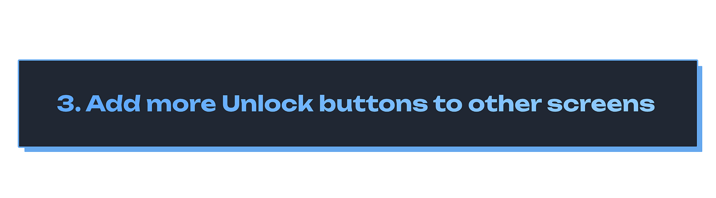 So this is kinda continuation of the previous item, and essentially the point is add more “Unlock” buttons on more pages, versus only on your homepage