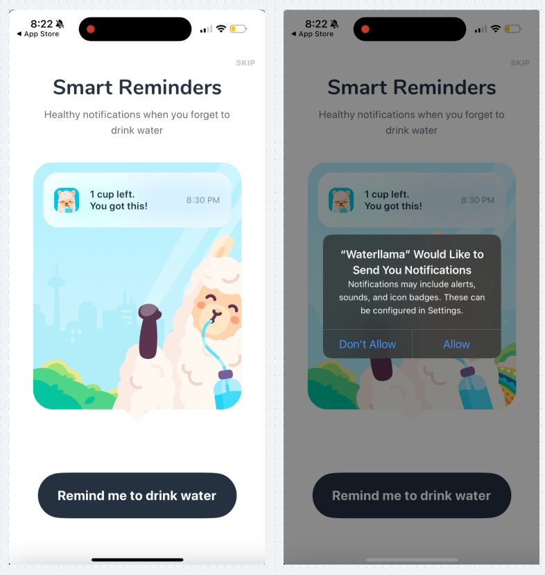 They also prompt you right after you track water for the first time, and they assume you feel good about this progress making it more likely you opt in.