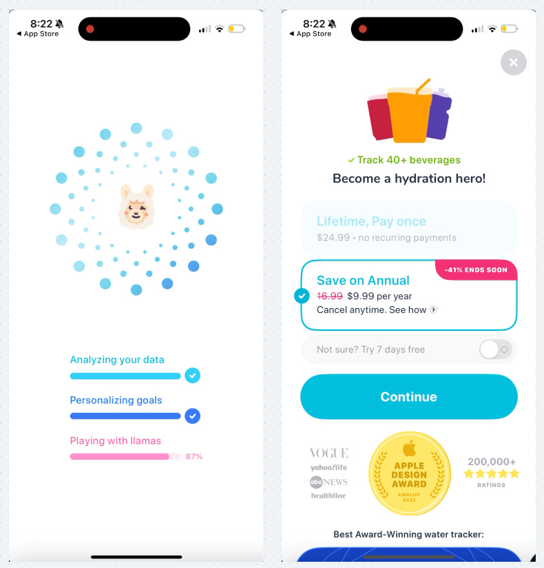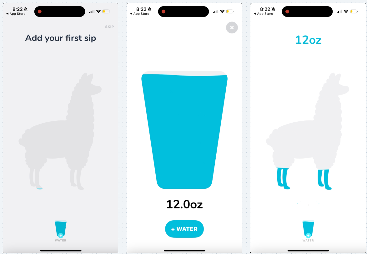 Waterllama uses this same goal gradient principle by visualizing your water drinking progress for the day. Once you get started and see that you’re getting close to finishing, you’re more motivated to hit your goal.