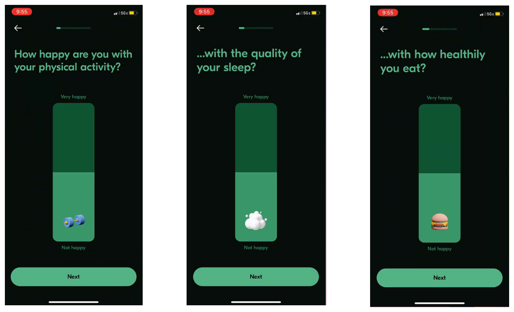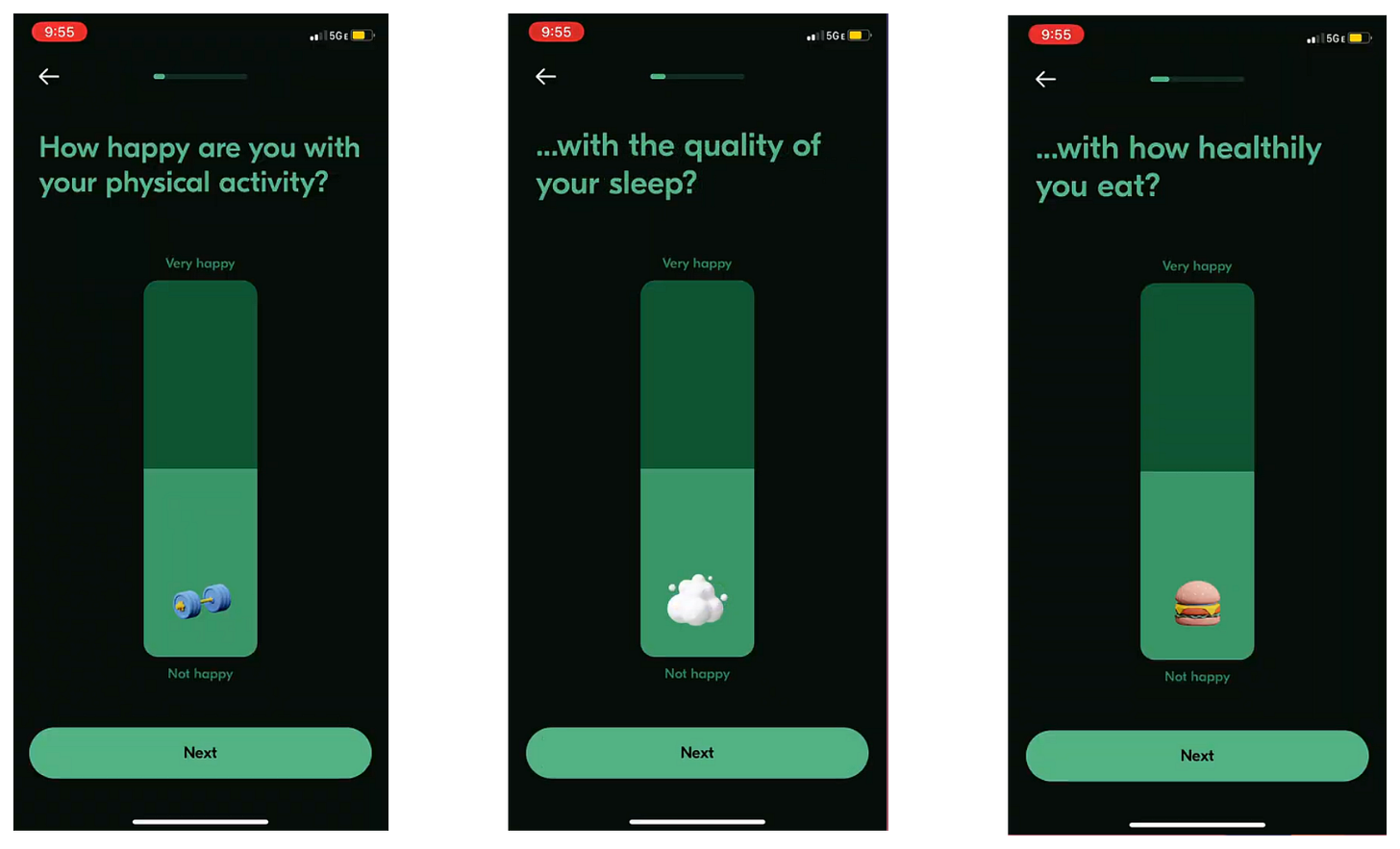 I like how VOS, a mental health app, uses them during their onboarding flow