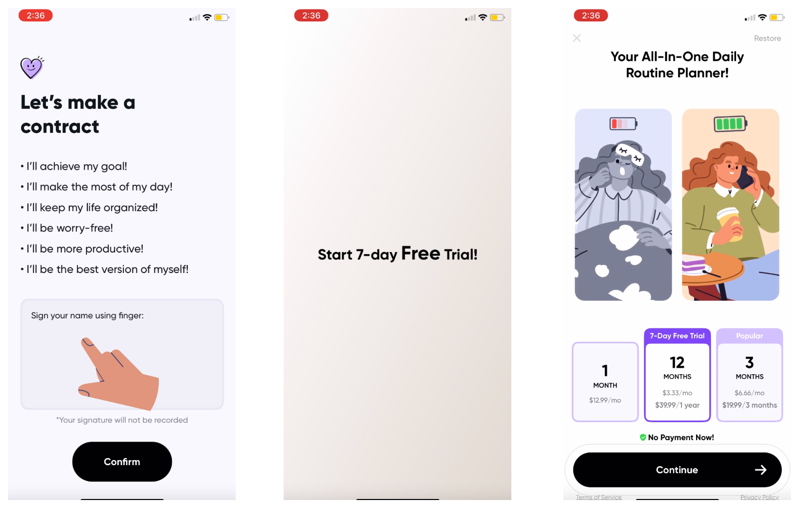 Other apps use the hold-down to commit interaction (Flo, Fabulous, Headway, Opal, etc.) but this slight modification makes it a distinct experience.